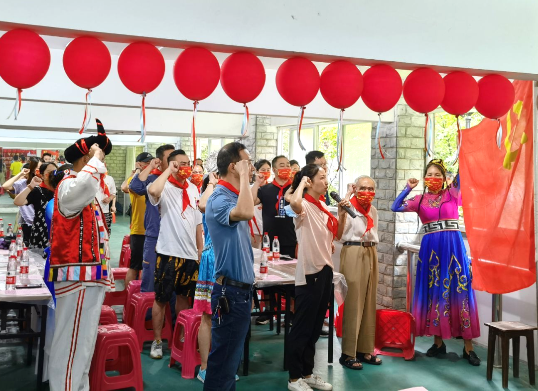 现场,社区还组织党员代表观看红色电影、重温入党誓词,通过党史知识学习研讨、忆苦思甜座谈交流、民族知识竞答互动等形式,增进社区居民同心向党的凝聚力。