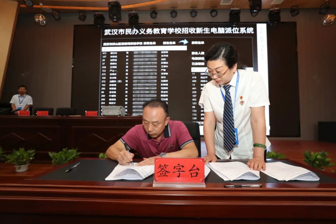 7月15日上午9:00,洪山区2021年民办义务教育学校招收新生电脑派位在马房山中学进行。这是洪山区首次组织实施民办义务教育学校招收新生电脑派位,杨春湖实验学校作为全区唯一学校参与。副区长王怀卓参与见证。