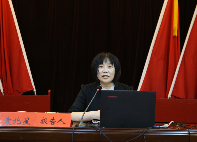 袁北星是湖北省党史学习教育省委宣讲团成员,长期从事中国近现代史科研与教学,已出版、发表学术成果150余万字,主持国家级、省部级基金类项目29项,研究成果多次获得国家级、省市级荣誉奖励。报告会上,袁北星以《从四个庄严宣告看百年历史答卷》为题,围绕习近平总书记“七一”重要讲话提出的新思想、新观点、新论断,从七个主要亮点进行了深入解读。