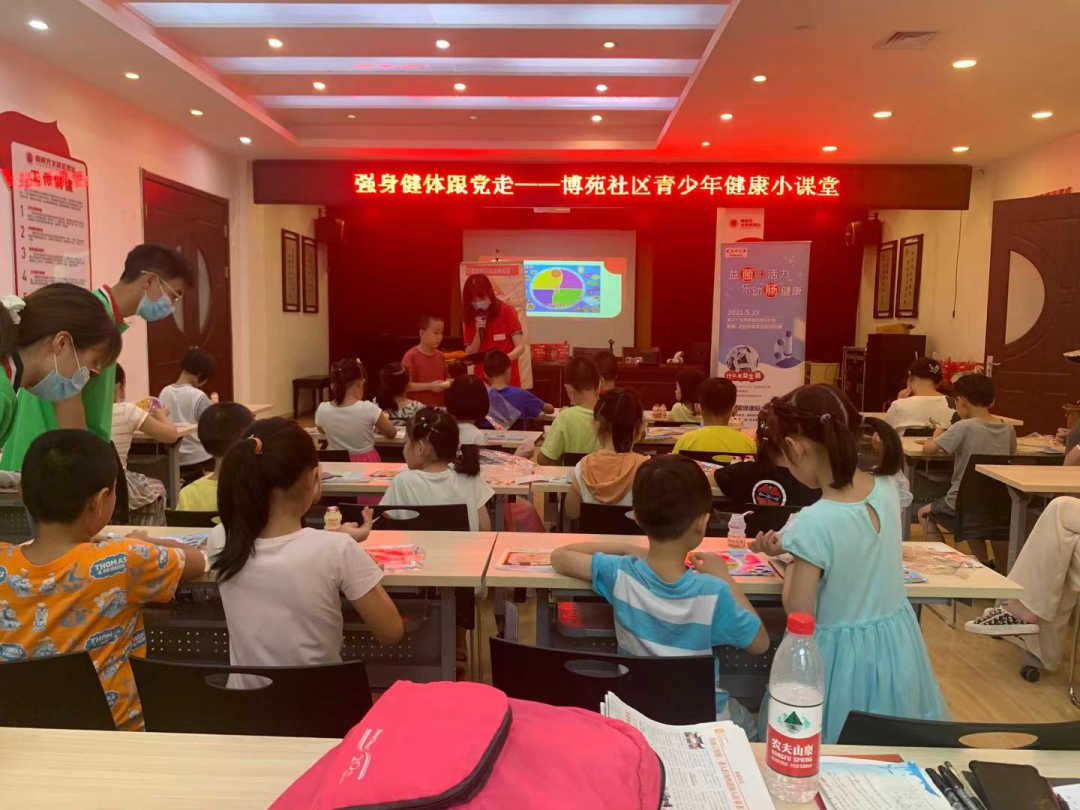 为培养青少年健康饮食习惯,促进青少年身心健康成长,7月15日,洪山区珞南街博苑社区新时代文明实践站以五社联动为基础,充分挖掘社区资源,链接养乐多集团为社区青少年开展了“强身健体跟党走”健康知识小课堂学习活动,吸引了辖区30余名小朋友参加。