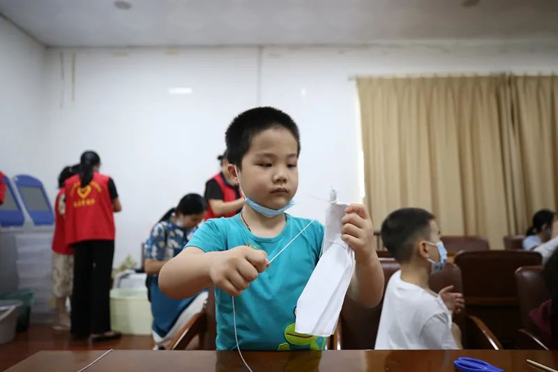 此次活动由武汉市洪山区科学技术协会、湖北省科学技术协会普及部、中南民族大学民族学博物馆主办,当天孩子们还体验了扎染技艺。大家先将棉白布用夹子、橡皮筋等工具扎出大小不等的“疙瘩”,再用针线缝出各种花纹图案,随后便开始进行染色。