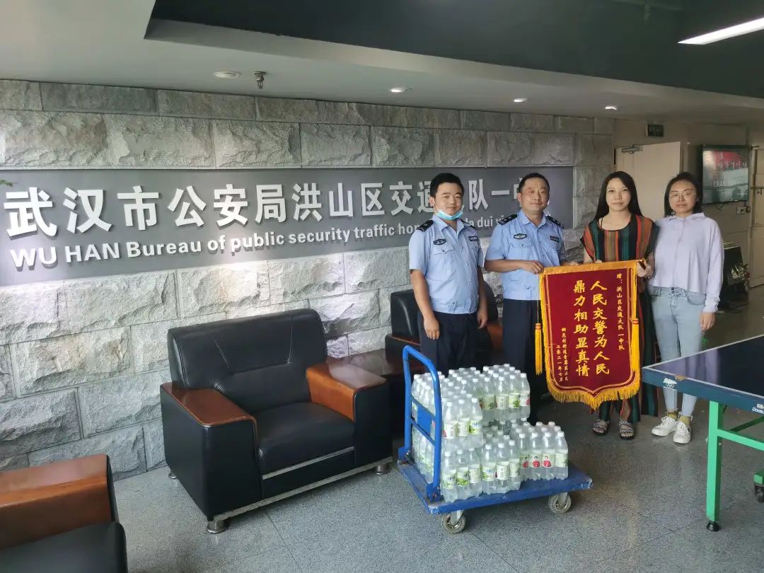 7月15日,青翠苑社区书记倪萍和居民代表来到洪山区交通大队一中队营区,将一面印着“人民交警为人民 鼎力相助显真情”的锦旗送到交警手中,感谢洪山交警规划停车泊位、整治交通秩序,解决青翠路沿线小区居民及车辆出行难题。