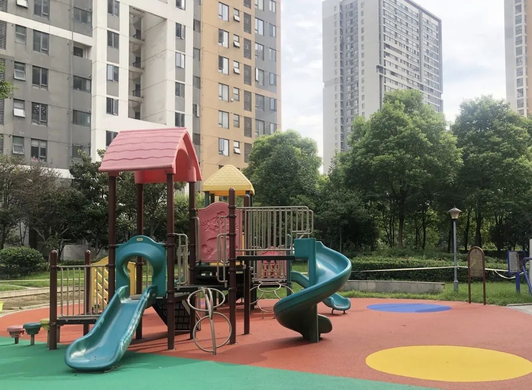 7月7日,安装厂家来到小区,耗时三天,重新铺设了地垫,充满童趣的地垫让小区游乐场焕然一新,五彩缤纷的颜色与滑滑梯相互映衬,在天空的映照下显得格外明亮。