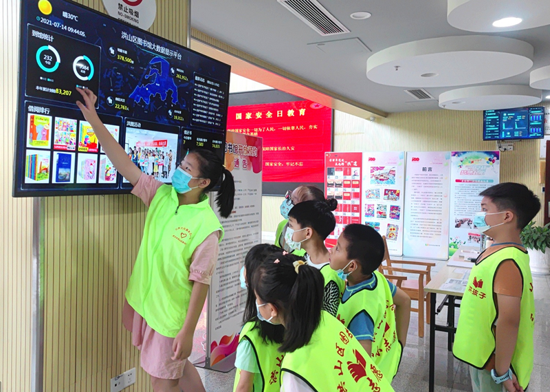图书馆暑期开展了小小管理员培训,邀请小朋友当图书馆小主人,体验图书馆的日常工作。后期还将组织这些小朋友走进社区当红色宣讲员,开展“洪孩子”传统文化传承课堂、探索之旅及暑期影院等活动,丰富孩子们的暑假生活。