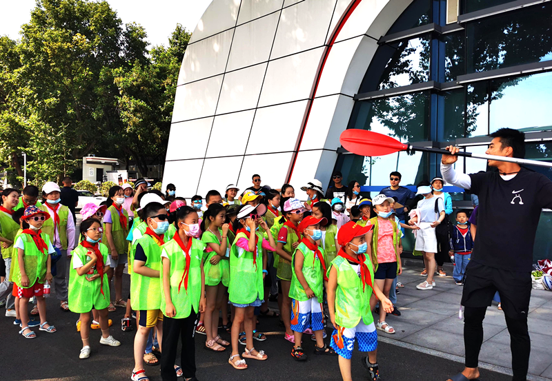 近日,50名来自洪山区暑期托管班的孩子来到东湖帆船基地,参加了一场热烈又消暑的皮划艇体验活动。