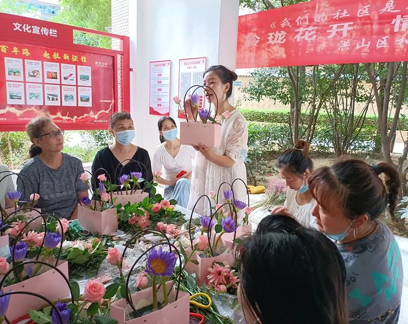 近日,和平街新鑫园社区“我们的社区是花园”系列活动之“与花有约,清凉一夏”花艺沙龙在玲珑汇小区党群服务驿站开展,在花艺老师的讲解与示范下,不出半小时,居民手里普通的花材,组合成了一盆盆精致的插花艺术品。