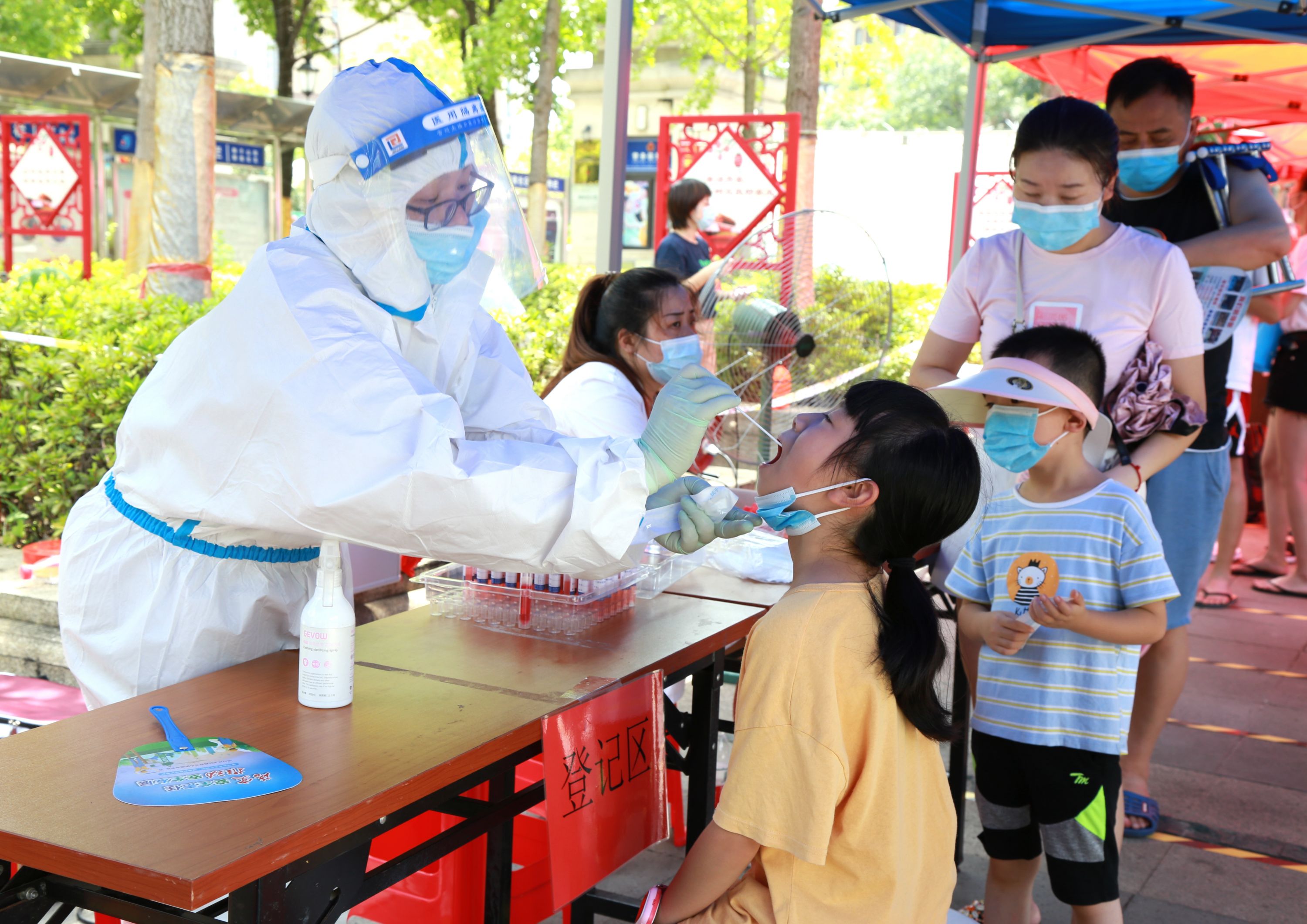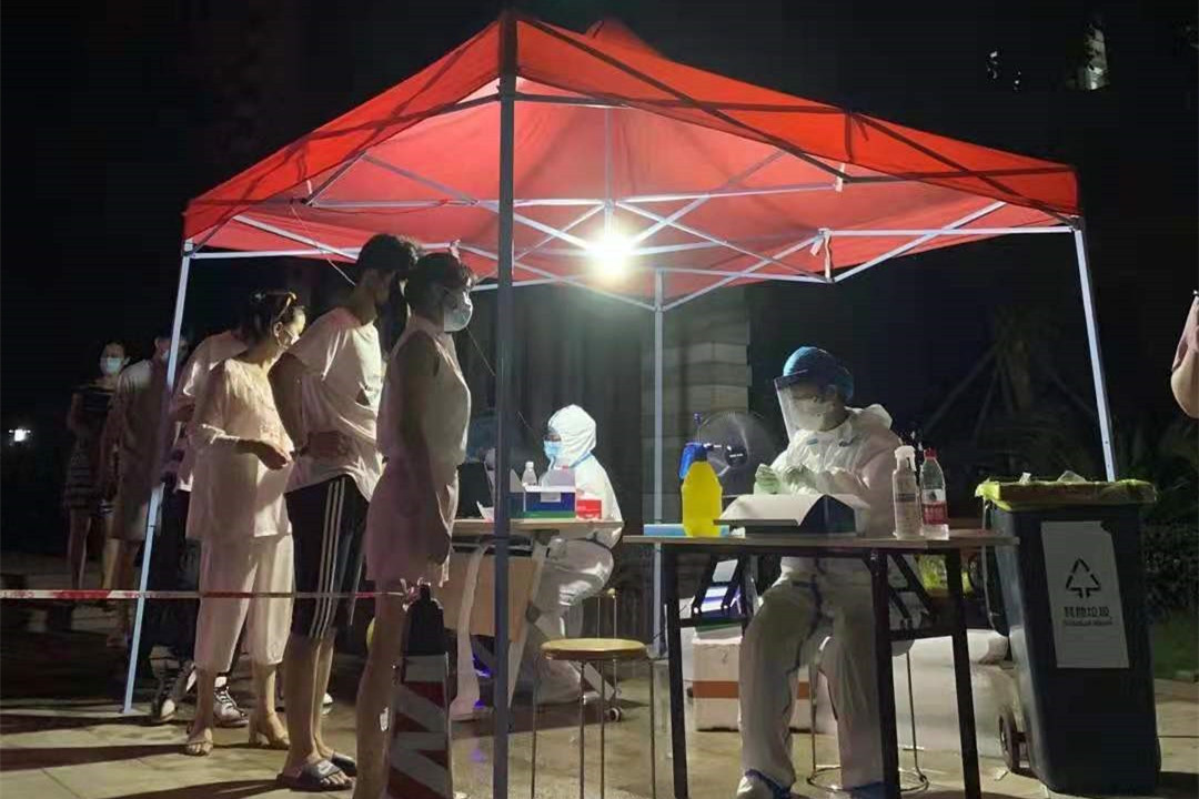 8月3日上午,青菱街道组织新城阅璟台工地310个工人进行了核酸检测,并对环境采样后,及时对该项目工地、会议室和周边环境进行了全面消杀。当天下午,在建和社区设置了3个采样点,安排45名医护人员,历时7小时,完成了建和社区阅璟台小区、长江首玺小区、建和世家小区及周边工地约9000余人的核酸检测工作。