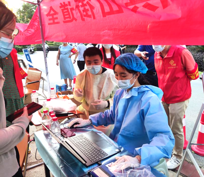 8月3日,武汉市启动全员核酸检测,在洪山区科经局实习的4名华中科技大学“青马班”学员主动请缨,协助洪山街林屿岸春天社区开展核酸检测工作 ,主要负责居民信息录入。