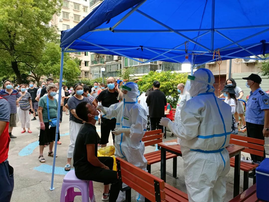 8月5日,清晨6点,青菱街道黄家湖社区微信群里,核酸采集点的工作进度,一条条“蹦”出来,社区工作人员、下沉党员、志愿者们按照网格兵分五路,快速完成核酸检测准备工作。