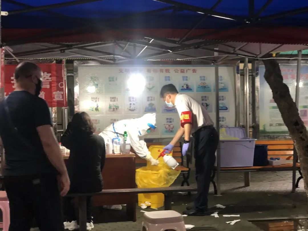 8月11日下午四点半,三个点位的10个医务组准点开始采样,每个检测点从等候区、测温区直到出口均安排引导人员,保障居民能按照采样要求安全、顺利、有序完成。在社区全体工作人员、下沉党员和医务人员的共同努力下,11日晚上9点半,东社区三个点位共完成4420例采样。为确保应检尽检,社区工作人员又连夜加班加点摸排需要上门检测的特殊人群,并安排第二天上门进行。