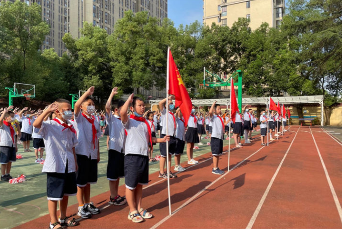 (华师万科金色城市一分校组织收看由区教育局局长赵群主讲的开学第一课)