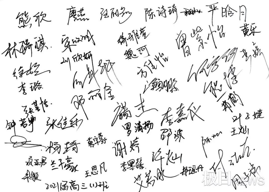 随信寄来的还有全班47名学生的签名——他们如今已奔赴全国各地准备开学,花了几天通过网络凑齐了扫描版的签名。