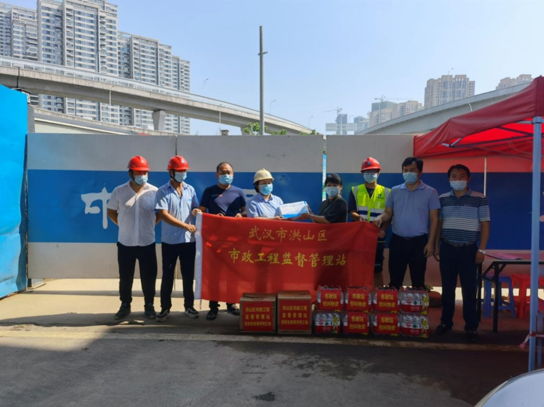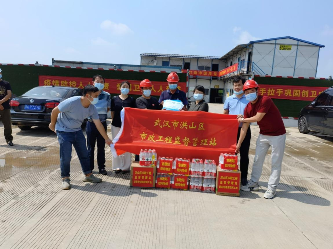 根据2021年安全生产月工作要求,洪山区市政工程监督管理站积极开展安全生产万里行活动。9月2日,区市政工程监督管理站班子成员、各科室监督员赴5个市区级项目,慰问奋战在工程项目一线的农民工及项目管理人员,感谢大家为我区市政建设所付出的努力和汗水。