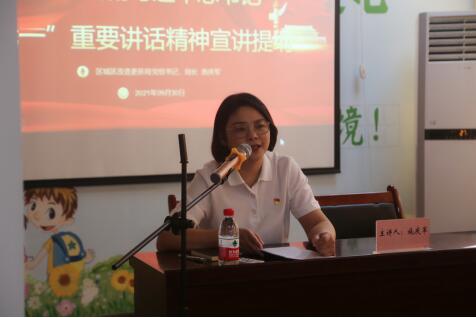 为认真学习贯彻习近平总书记“七一”重要讲话精神,9月30日,党史学习教育洪山区委宣讲团成员(城区改造更新局党组书记、组长)施庆军来到湘龙鑫城社区,作《学习贯彻习近平总书记“七一”重要讲话精神宣讲提纲》专题宣讲,并协助社区开展换届选举动员工作。