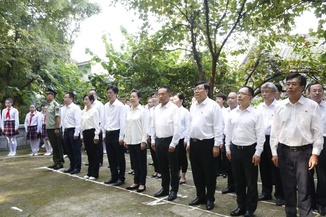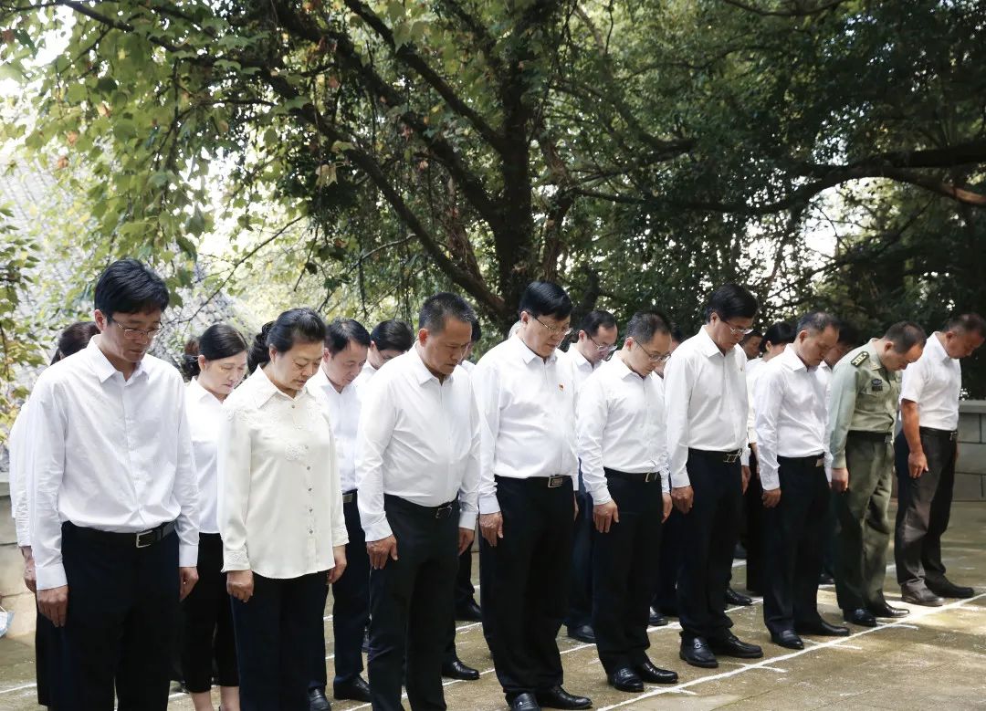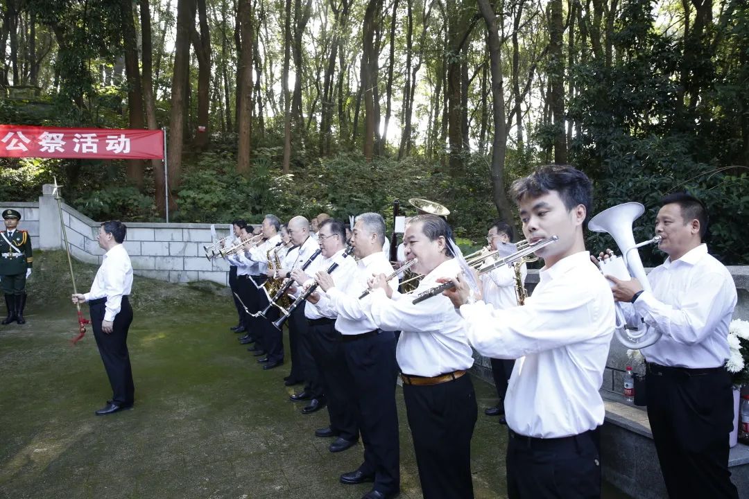 上午9时,全体参祭人员缓步行至李汉俊烈士碑前,列队整齐,神情肃穆,奏唱国歌,向烈士鞠躬默哀。