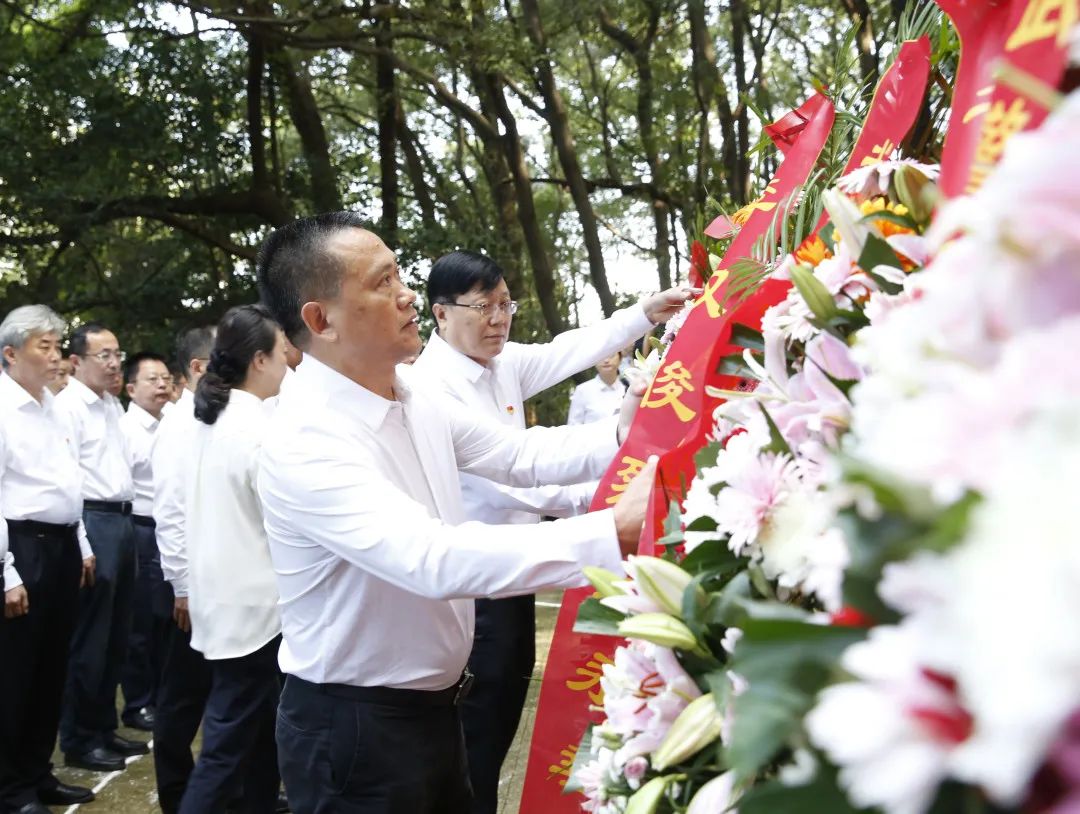 随后,区四大家领导和省林科院负责人作为代表,为烈士整理花篮缎带,并瞻仰烈士纪念墓,敬献鲜花、行鞠躬礼,表达崇敬之情。