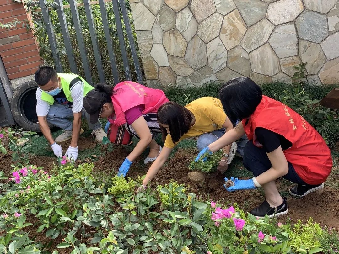 “新增了这么多花草,太有国庆节的喜庆氛围了!”买菜回家,王阿姨看到闲置空地上突然“长”出了小花,开心地为志愿者们点赞。