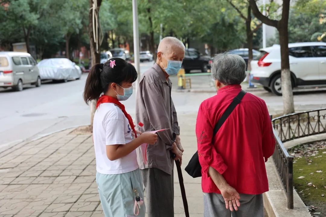 湖工社区携手广埠屯小学湖工分校以及湖工工业大学的下沉党员们,围绕第10个全民国防教育月开展系列活动。在观看完革命影片后,来自广埠屯小学湖工分校的同学向路边歇息的老人,以及过往的行人们分发全民国防教育月的宣传材料,并向部分阅读困难的离退休老人们介绍全民国防教育月的基本情况。