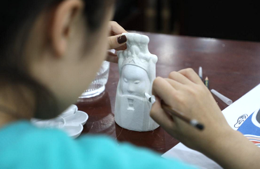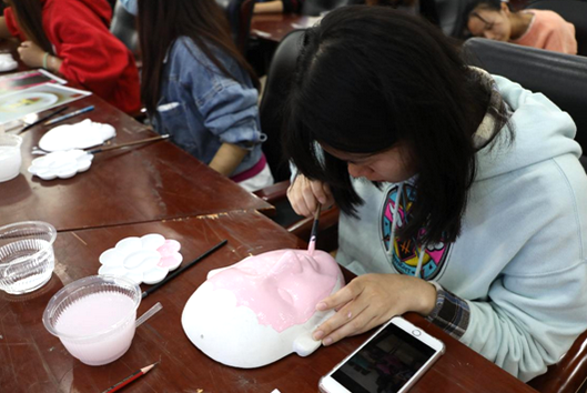 手绘过程中,学生们兴趣高涨。来自纺织科学与工程学院的女生兴奋地说道:“选到了自己小时候喜欢的‘女驸马’,在老师的指导下,亲手绘制出偶像的形象,特别开心,同时自己对非遗有了更多了解!”另一位来自电子与电气工程学院的大三男生表示:“从小就对电视上那些活灵活现、惟妙惟肖的京剧脸谱感兴趣,脸谱的色彩搭配和不同画法,彰显着不同的人物性格形象,特别神奇。”