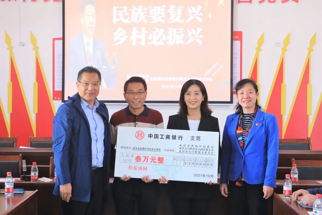 10月12日上午,洪山区城管执法局、洪山区民政局及爱心企业代表来到了对口帮扶的新洲区旧街街道石咀村,助力乡村振兴。