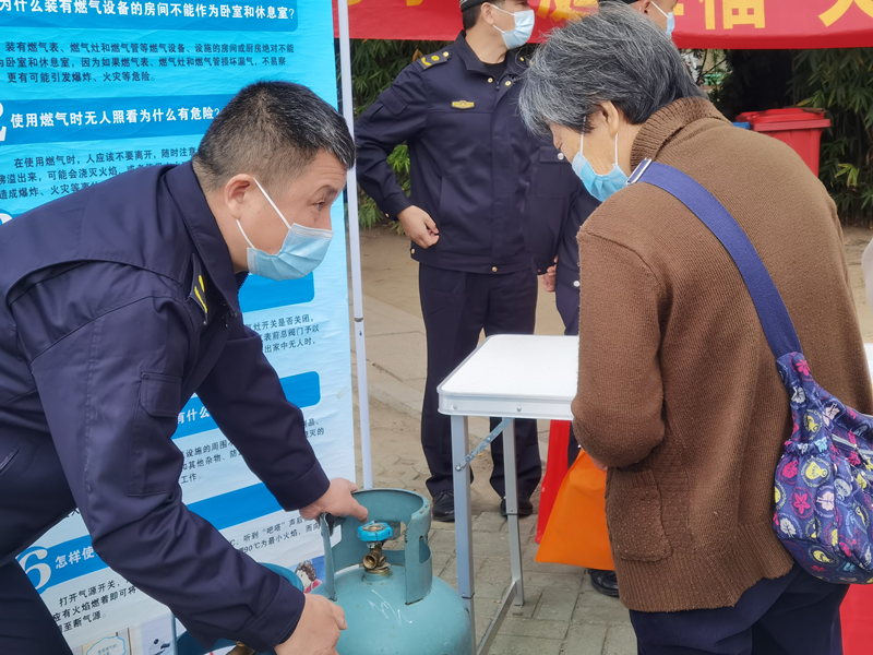 活动现场,工作人员通过设置宣传咨询点、发放宣传资料、展示讲解燃气胶管使用方法等形式进行安全用气宣传。洪山区城管执法局工作人员现场解答居民生活中碰到的用气问题,还向居民详细讲解了燃气胶管使用年限、燃气具的正确使用和保养方法,引导群众安全用气、依法用气、科学用气。针对居民需求,城管工作人员免费上门,为居民检查燃气具的安全性,并向住户介绍识别燃气漏气的方法。