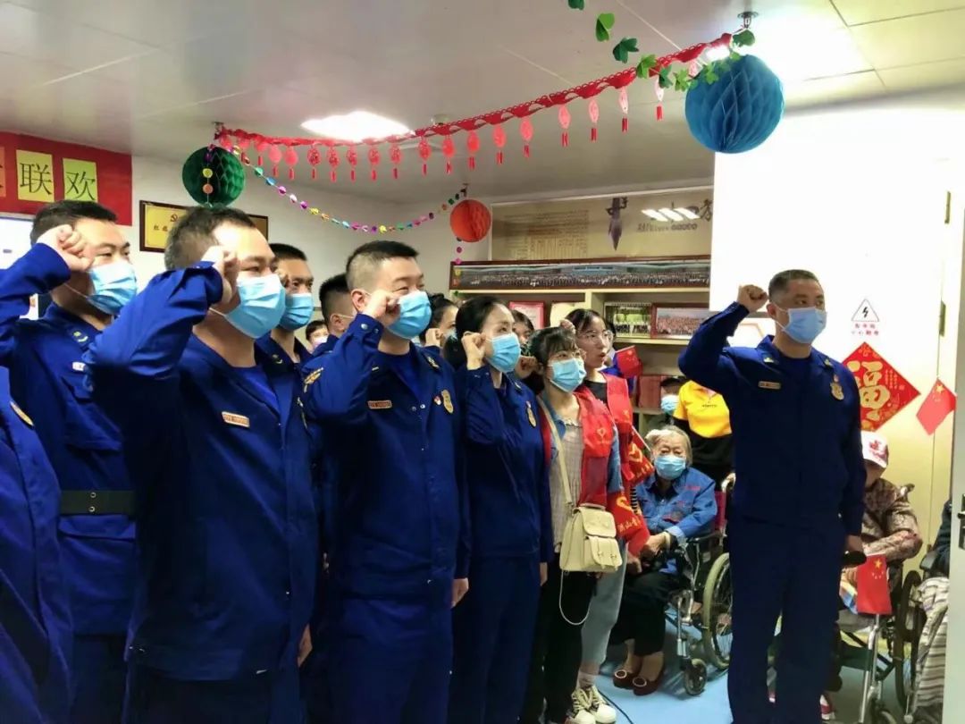 大队党支部一行先后与该院的老兵一起重温入党誓词,献上“闪闪红星”等革命歌曲,聆听老兵们讲述革命故事,感悟革命精神,大队党员关切询问老兵们的身体健康和生活起居情况,感谢老英雄为新时代作出的牺牲和努力,献上节日祝福。随后,为护理人员宣讲消防安全知识,用实际行动表达对老兵深深的敬意。