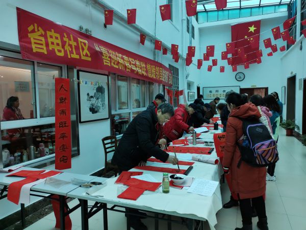 1月10日上午,省电社区在梨园小区老年大学开展了“喜迎新春写春联·情暖邻里送祝福”志愿服务活动。现场共送出春联120余幅。同时开展了一场热闹非凡的迎新春联欢会,社区党员、文艺志愿者、居民100人参加。此次迎新春联欢会活动,通过欢快的舞蹈,优美的旋律,嘹亮的歌声,展示社区居民朝气蓬勃、积极向上的精神风貌。(陈杏梅)