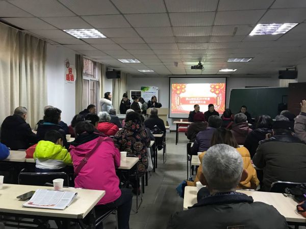 1月10日上午,双墩社区联合武汉市逸飞社会工作服务中心,在社区活动室举办了迎新春联欢会。居民在此欢聚一堂,欣赏辖区文艺团队带来的精彩节目。(彭聪)
