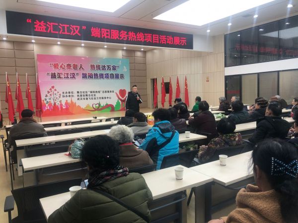 1月10日,舞台社区端阳热线和逸飞驻民意街社工中心将一年来的“爱心牵老人,热线达万家”项目服务进行了展示。活动中,照片展示、文艺表演、服务对象讲话、有奖问答穿插进行。端阳热线的服务不会结束,志愿者们的爱心不会结束,和老年人之间诚挚的感情更不会结束!(覃娟)