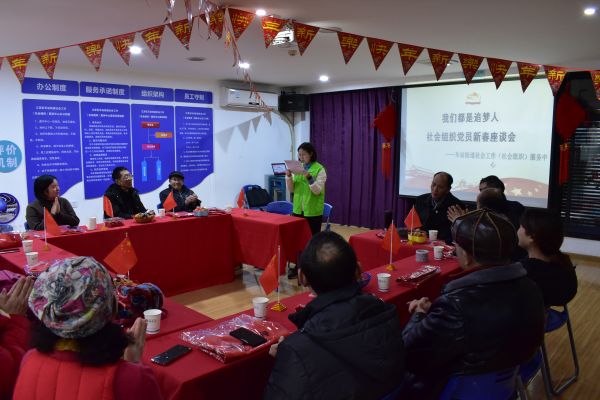 1月10日上午,华清社区联合车站街道社会工作服务中心在活动室二楼开展了以“我们都是追梦人”为主题的社会组织党员新春座谈会。会上党员们分享了过去一年自己工作的成果和新一年工作的展望。活动结束后,卓越书画院的何同兴还现场送上了自己提前准备好的春联和福字,现场其乐融融,温馨满满。(何萍)