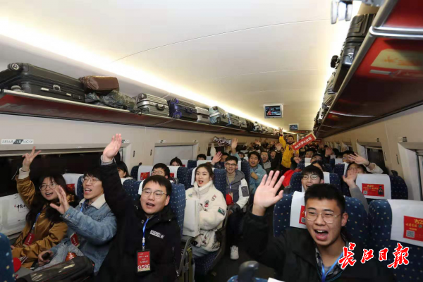 长江日报-长江网讯(通讯员 张宾 汪万军 邓洲 王峰 王红蕾) “呜……”上午10时42分随着G586汽笛一声鸣响,一列满载着100名莘莘学子的高铁缓缓驶出武汉站,向着北京进发。