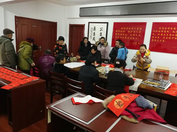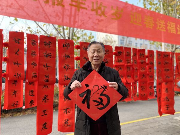 1月14日,景江社区邀请了丁怀民等书法志愿者现场挥毫泼墨,社区工作者将飘着墨香的对联、福字一同送到高龄党员手中,送去组织对他们的关心和新年的祝福。