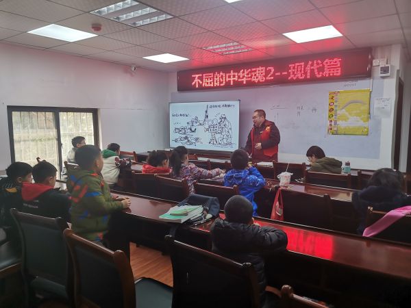 1月14日,龙灯社区学生托管中心举办了“不屈的中华魂”红色教育活动的第二节课。(彭聪)