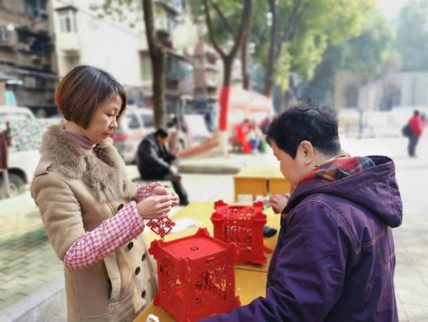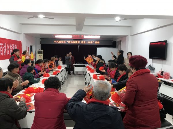 1月14日下午,十九街社区“欢乐闹新年 邻里一家亲”的活动现场洋溢着浓浓的年味儿。社工教大家编织中国结,用普通的细绳巧妙的组合,变成了一个个吉祥的中国结。(万晶)