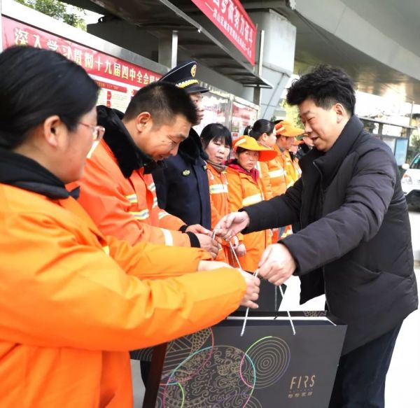 “您好,您这一年辛苦了!洪山的整洁美丽有您一份功劳!”1月16日下午,在野芷湖环卫机扫队,区委常委、宣传部长、区总工会主席赵陟对一线环卫工人进行慰问,向他们送上新年祝福和200份年货礼包。