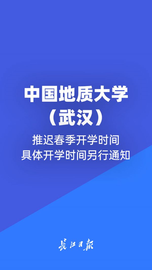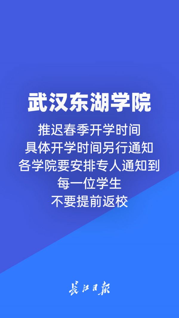 记者梳理发现,此前,中国地质大学(武汉)、中南财经政法大学、华中农业大学、长江大学、湖北工业大学、武汉纺织大学、三峡大学、武汉体育学院、湖北文理学院、黄冈师范学院、武汉工商学院、武汉东湖学院、武汉工程科技学院等10多所高校发出“推迟春季开学时间,具体开学时间另行通知”的通告。(记者杨佳峰 李玉莹 胡欣)