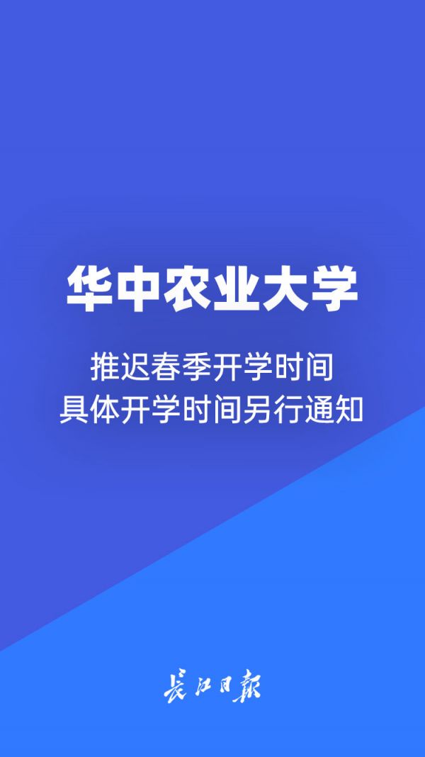 长江日报-长江网1月26日讯 26日中午,武汉大学、华中师范大学相继发出通告,该校决定推迟春季开学时间,具体开学时间另行通知。此前,中国地质大学(武汉)、中南财经政法大学、华中农业大学等武汉高校已经发出春季延迟开学的通知。
