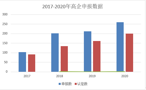 近年来,高企认定工作成效显著,得益于区科经局实施的科技企业梯次培育计划。2018年认定高企数量135家,同比2017年增加44家,增长率高达48.35%。2019年认定高企数量达到161家,同比2018年增长率为19.26%,数量逐年递增。