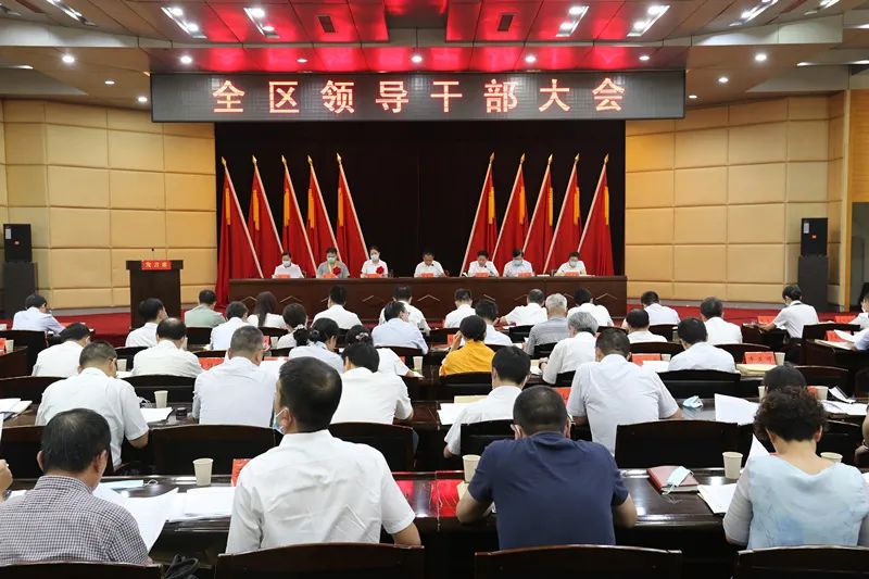区人大常委会主任刘悦斋、区政协主席王兰英等区委、区人大常委会、区政府、区政协领导,区法院院长、区检察院检察长,在职区级领导干部以及各街(乡)、区属各部委办局、企事业单位、人民团体党政主要负责人参加会议。