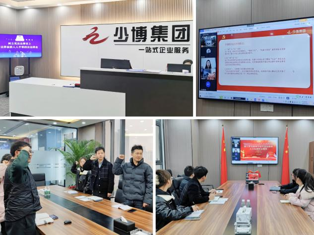 卓刀泉街街道商会常务副会长单位、少博集团有限公司以12月支部主题党日为契机,开展宪法学习周活动。公司集团前台轮播宪法日宣传画,少博青年党员线上线下集中学习宪法知识,了解宪法的发展历程,观看普法视频《我与宪法零距离》。少博集团党支部以青年说“法”为主题,党员群众围绕税法、建筑法、劳动法分享在业务、日常工作中防范法律风险和化解法律危机的案例,近距离感受法的魅力。集团党务负责人鲁晓伟说道,通过此次活动,在党员中掀起学法、守法的法制宣传热潮,进一步增强了法治意识和权利意识,为创建平安和谐工作氛围创造了有利条件。