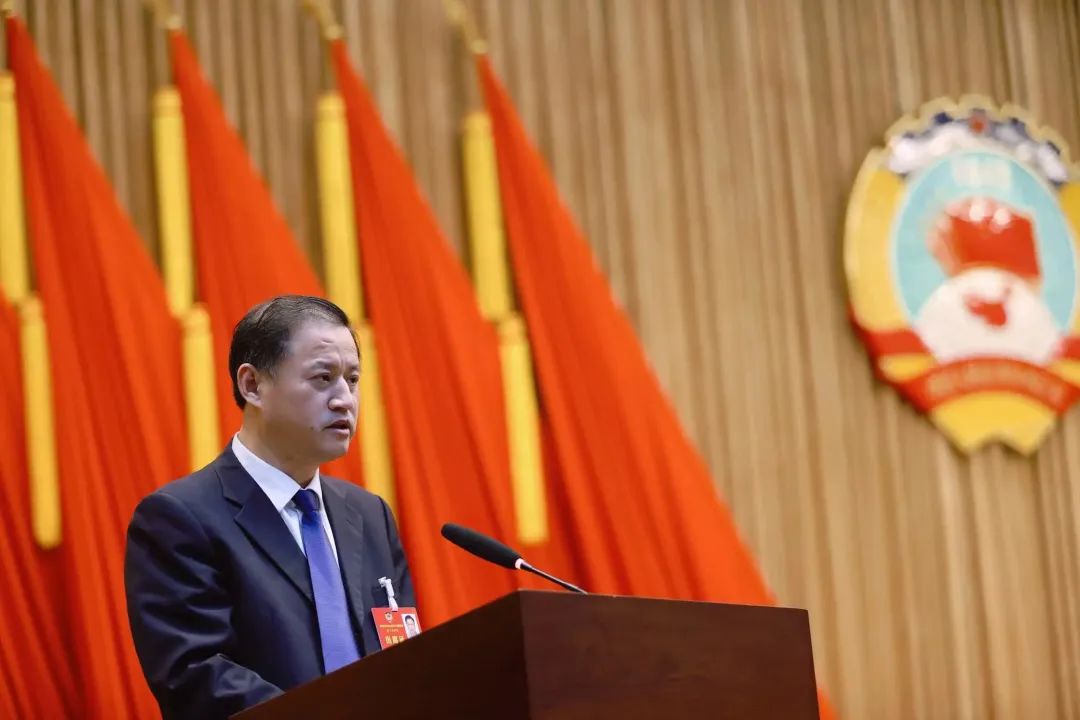 刘劲松代表政协洪山区第十届委员会常务委员会向大会作工作报告。