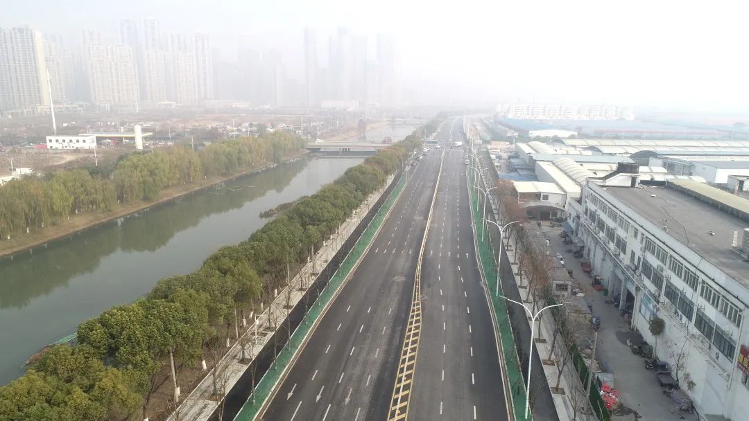 1月3日,记者在现场看见,辅道、人行道、绿化带已经撤除围挡,飞线入地,照明设施、人行过道焕然一新。新栽种的香樟、樱花、栾树等乔木昂然挺立道路两侧,与青菱河边低垂的杨柳相映成趣,景色宜人。