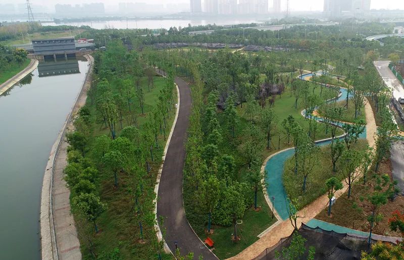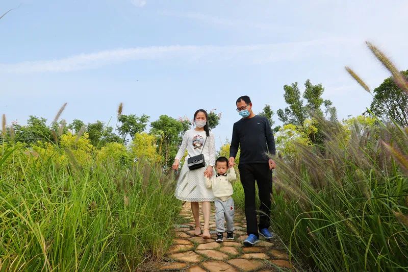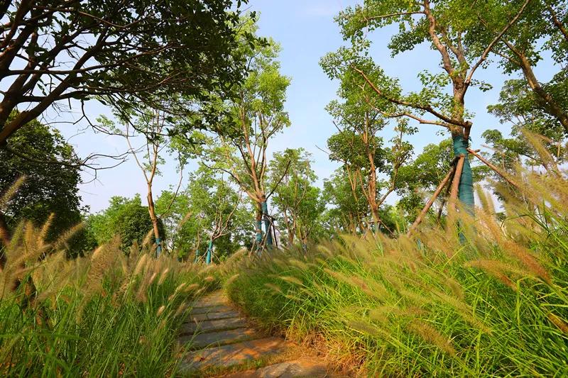 贯穿园内的1.4公里绿道,是晨跑、散步的理想场所。而成片的狼尾草,则为公园平添了几分野趣。