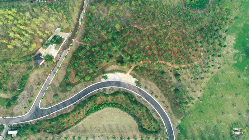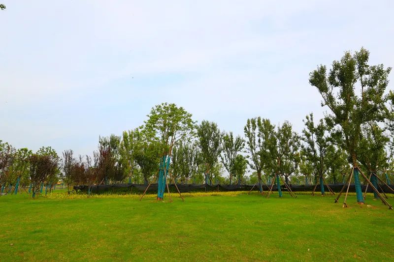 该游园以香樟、栾树、枫杨为基调树种,将乌桕、垂柳、樱花作为特色树种,打造整齐简洁、自然多彩的两种景观特色。