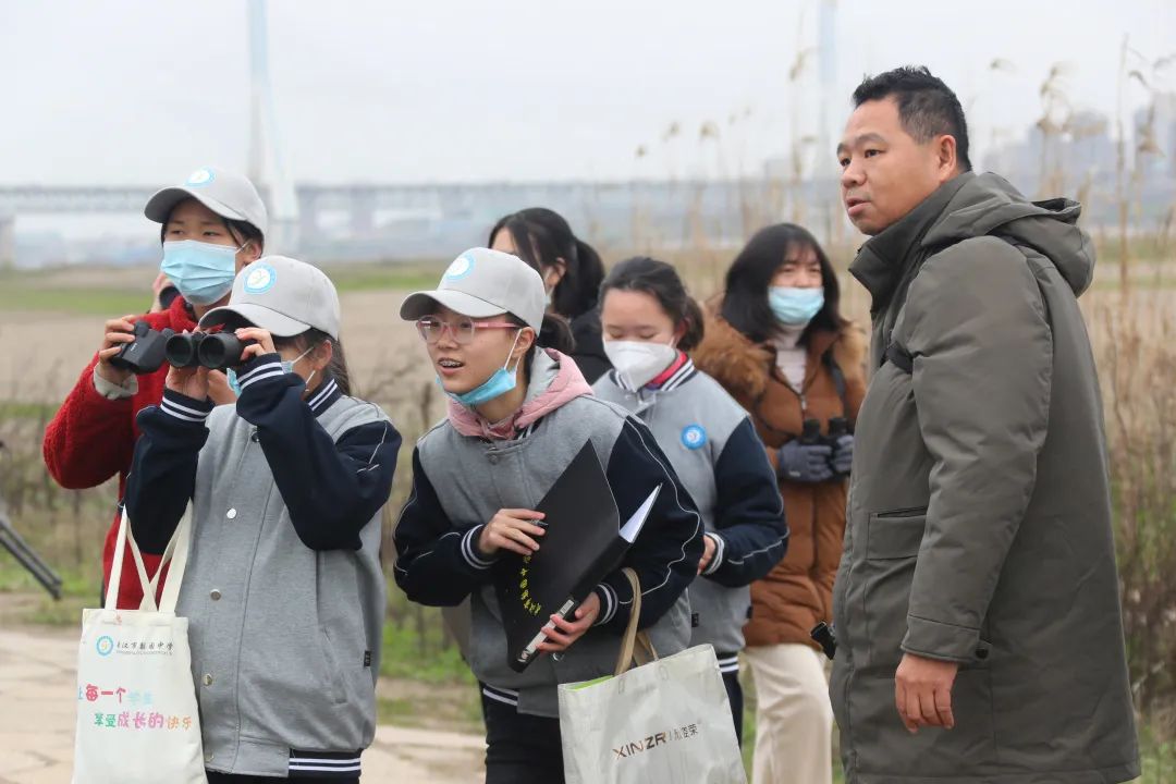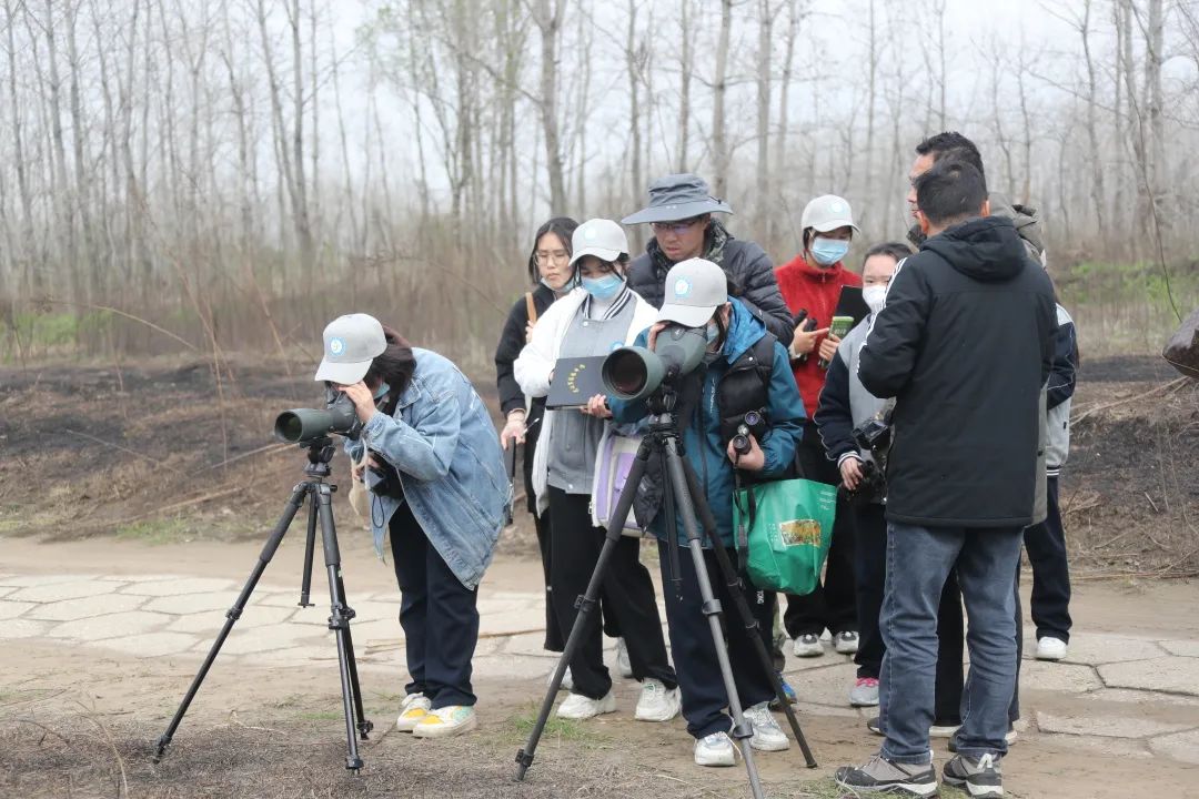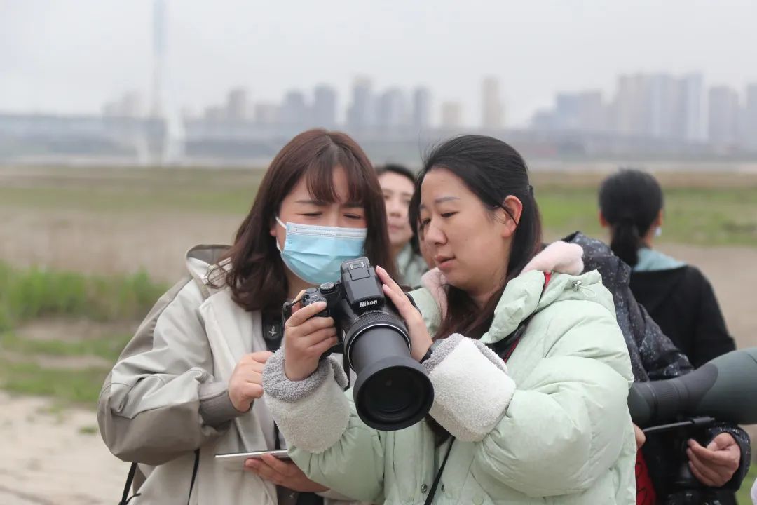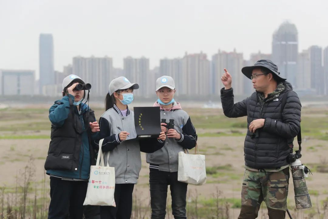 观鸟人群中,8名学生格外激动,她们两人一组,轮流观测和记录,不时提出各种问题。据悉,她们是梨园中学观鸟社团的成员,每周都会参加学校组织的观鸟课程学习,自然不愿意错失这次实践机会。在众多老师的指导讲解下,她们学会了如何正确高效使用单、双筒望远镜;如何使用工具书鉴别鸟类;如何专业描述不同鸟类的各种特征等。
