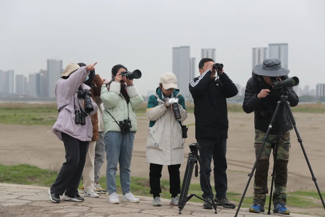 武汉市园林和林业局2022年公布的《武汉市天兴洲沙滩生物多样性成果报告》显示,天兴洲共收录到鸟类236种,其中国家一级保护鸟类4种,包括黑鹳、东方白鹳、中华秋沙鸭、黄胸鹀;国家二级保护鸟类36种,省重点保护鸟类48种。现场,大家不仅观测到常见的喜鹊、远东山雀、灰头麦鸡等,还记录到比较少见的短耳鸮、黑鹳等。