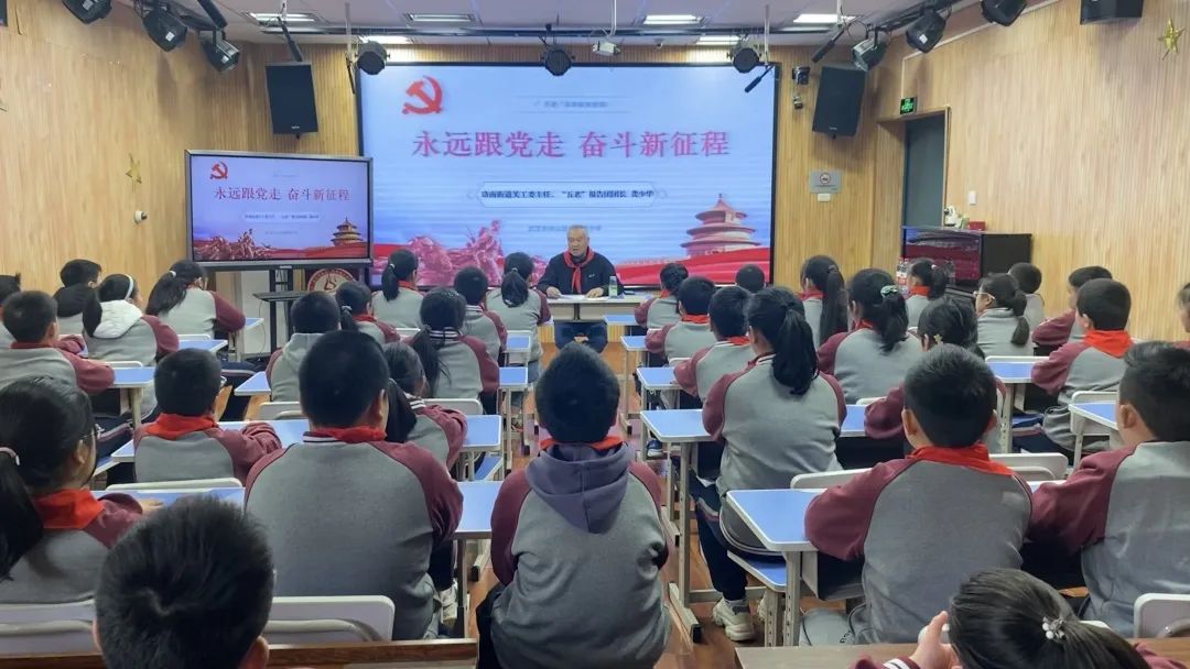 “孩子们,你们知道参加党的一大代表有多少人吗?”在珞狮路小学,街道“五老”报告团团长龚少华用亲切提问开启讲述。他向少先队员们讲述革命先烈李汉俊的成长历程,用一句句动人的话语和一个个坚定的眼神,鼓励所有少先队员,要继承革命传统,不忘革命先烈,弘扬伟大的民族精神。