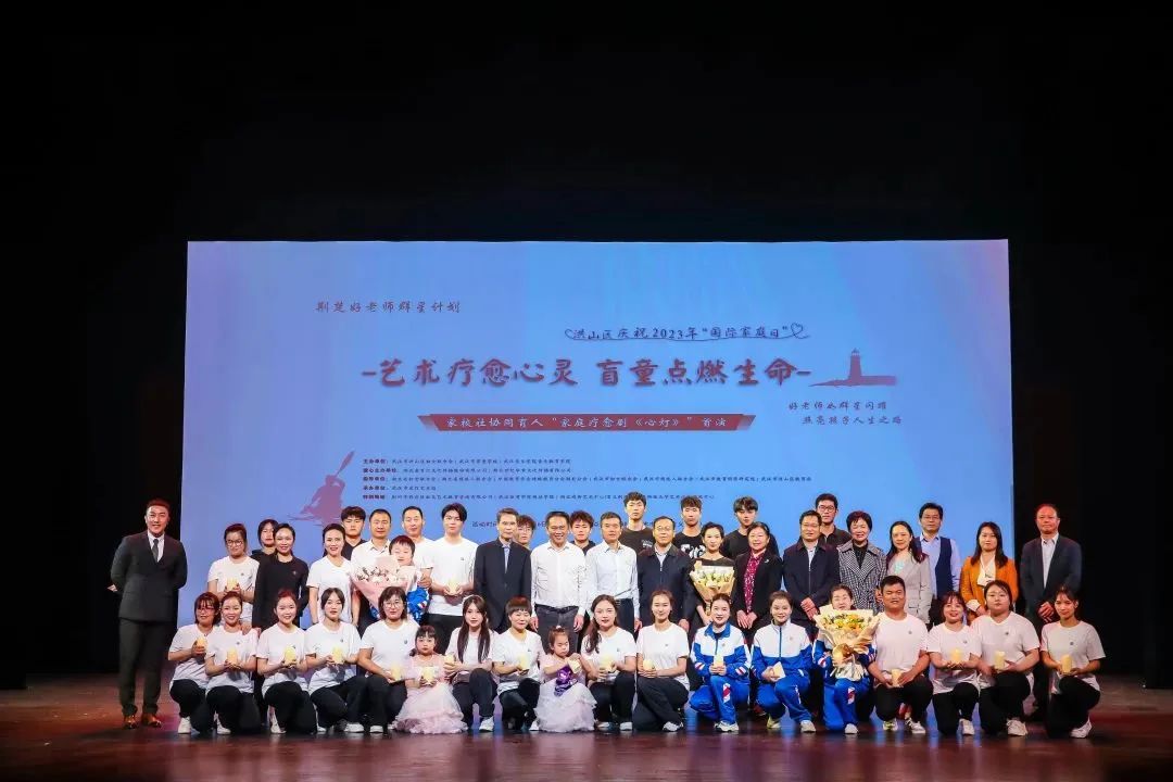 “以一灯燃诸灯,终至万灯明。”5月6日晚,由武汉市洪山区妇女联合会、武汉市盲童学校、武汉音乐学院音乐教育学院共同主办的家庭疗愈剧《心灯》,在湖北省戏曲艺术中心首次公演。来自武汉市盲童学校的视障孩子、教师、武汉音乐学院师生、爱心志愿者,倾情演绎家校社协同育人的感人故事,直击现场观众的心灵,引发强烈共鸣。