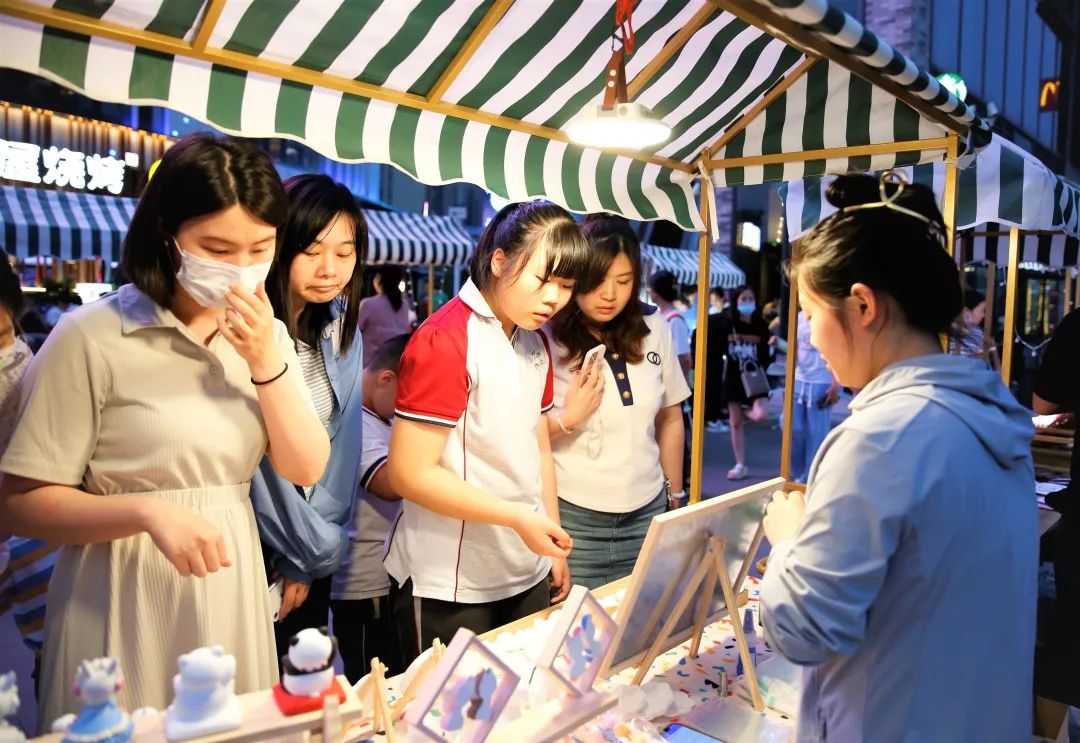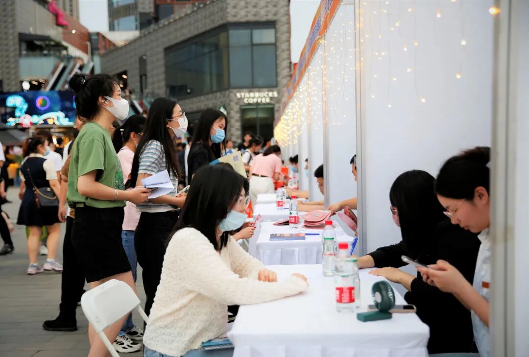 作为今年洪山大学之城就业节的重头戏,由区人力资源局牵头主办的“星光优岗夜市”晚上6时在关山街泛悦城广场准时与求职者见面,区委常委、组织部部长刘华珍,区人大常委会副主任吕明新,区人民政府副区长张俊峰率相关部门负责人到场指导。现场分为星光直播间、优岗市集长廊、就业指导站、政策直通车、泛悦市集五大区域,60余家企业将招聘展位搬到特色商户摊位中间,星光点点宛如烟火夜市。广大求职者穿梭市集,好吃的、好喝的、好玩的,琳琅满目;各种招聘信息精准覆盖。在就业指导站,还有指导老师精准对接毕业生,制定“一人一策”帮扶计划,助力毕业生高质量就业。