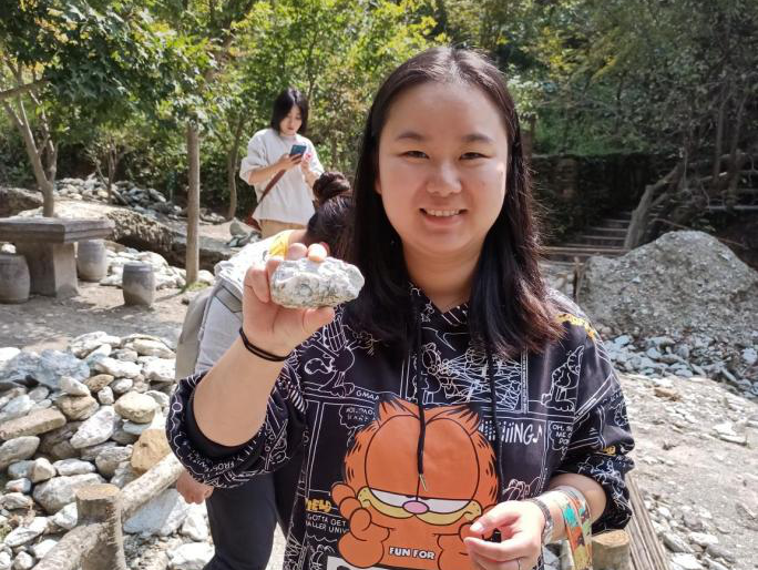 原来小石头中有大道理,听完讲解,大家纷纷寻找自己最喜欢的岩石,采集带回家。